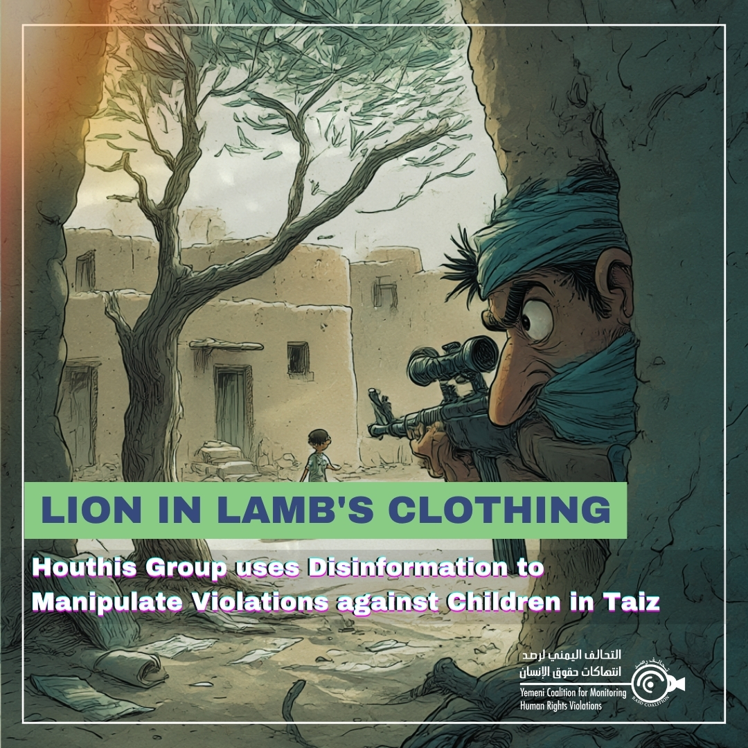 In this incident, the Houthi group continued its media disinformation: conflicting accounts of the dates (January 27 or 28) and place (Khadeer or Sabr Al-Mawadem), lack of evidence or even the identity of the child victim, while blaming government forces or the Arab Coalition, which ceased field operations two years ago. This pattern is not new; rather, it is part of the "soft war" machine the group exploits to cover up its crimes, taking advantage of its control over 62% of media platforms and outlets, and suppression of independent media.